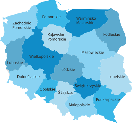 Wybierz województwo na którym planujesz projekt jeśli chcesz uzyskać wsparcie z regionalnych środków pomocowych lub kliknij poniżej napis "Polska" jeśli interesują Cię ogólnopolskie programy wsparcia dotacjami z Unii Europejskiej: Polska